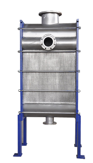 本公司生產(chǎn)的全焊接板式換熱器,其模具為獨(dú)立開發(fā),內(nèi)部板片為波紋型,它吸取了板式換熱器的優(yōu)點(diǎn)具有大角度和小角度兩種形式,可以將傳熱和壓降結(jié)合到理想程度;板片均采用進(jìn)口不銹鋼,為設(shè)備質(zhì)量提供了有力的保障。